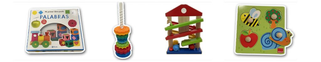 - Juguetes de encaje o clasificación: Promueven la resolución de problemas y la coordinación.